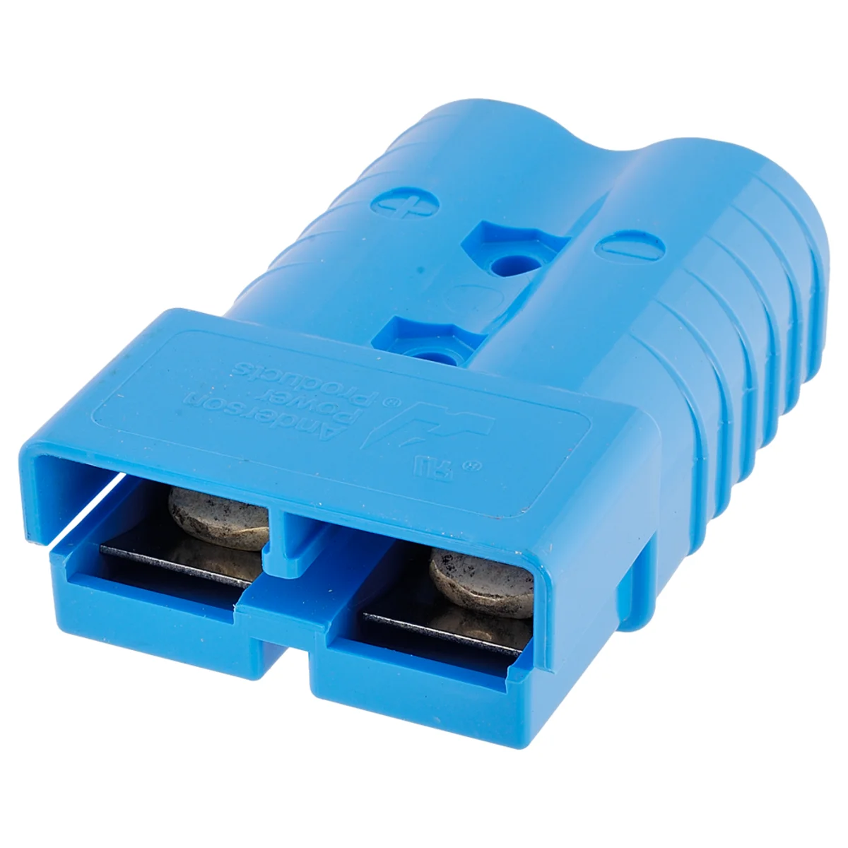 Batterikontakt 350A, Blå 350A, 2 polig power Batterikontakt, Blå L108mm, B70mm.Terminaler ingår 12.5mm. in dia Passar: El-Truckar m.m. Typ: Ers Anderson Power Products. Dammskydd = 85-300-3086, Hantag = 85-300-3080
