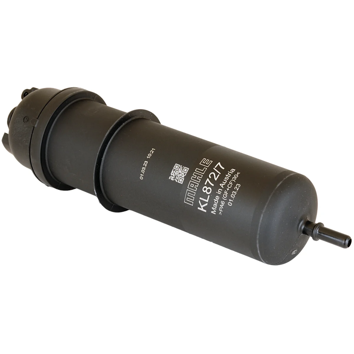 Bränslefilter Mahle Original In-Line Filter, Utlopps-Ø 7.9mm. Höjd 266mm, Diam. 58mm.