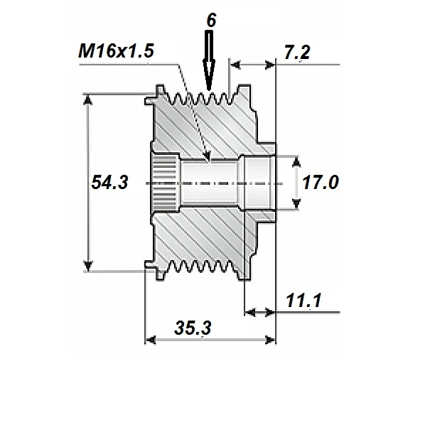 Frigångsrems.17x54,6x35,1, 6sp 6 spår, FW 17 x 54.65 x 35.1 Alternativ : F229603.7