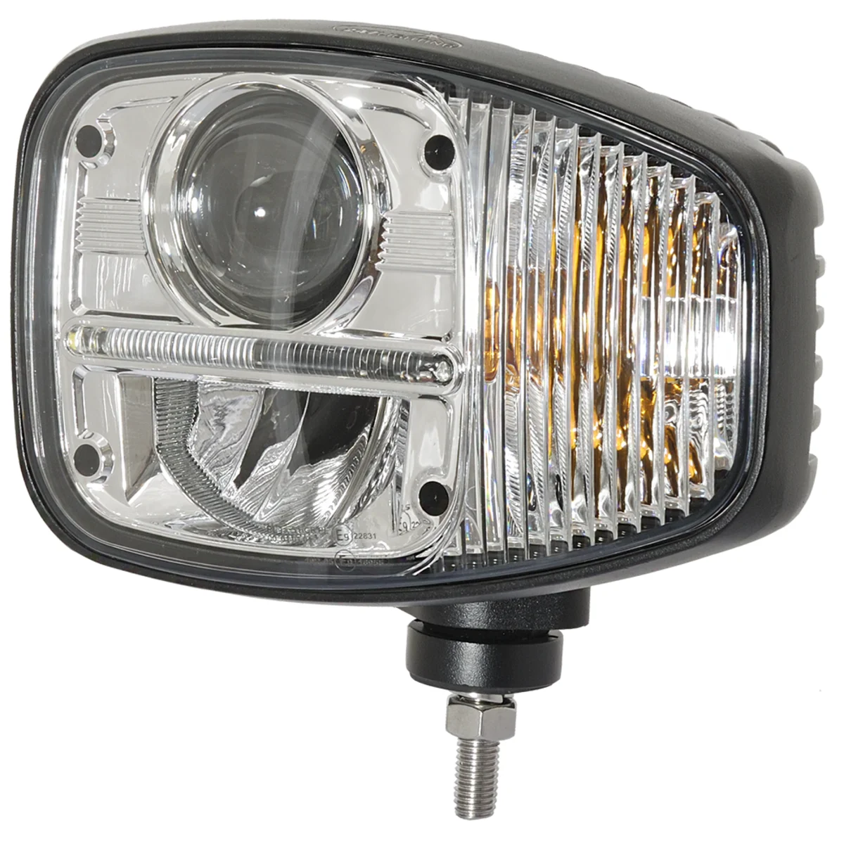 Kombistrålkastare LED 12/24V,V Vänster, 12/24V, 44W, 5200lm L220mm x B151mm, D105mm. H 173. Halvljus, helljus, positionsljus, blinkers. High Beam: 5200 Lumens, 44W | Low Beam: 2600 Lumens, 22W | DRL: 850, 7W Lumens 16 LEDs IP68 Rated ECE Approved Reg 6 | Reg 10 | Reg 87 | Reg 112 Polycarbonate Lens Die Cast Aluminium Housing Stainless Steel Bracket Mount | M10 Bolt Plug-In Connection 200mm Cable 269m Beam Distance Operating Temperature: -40C to +60C Dimensions: 228*106*173mm Current Draw @ 12V 3.5A (high) | 1.8A (low) | 0.5A (DRL) | 0.5A (indicator) Current Draw @ 24 V 1.7A (high) | 0.9A (low) | 0.3A (DRL) | 0.3A (indicator)