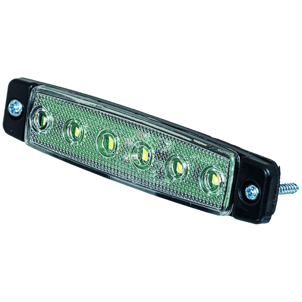 Positionsljus LED Vit 12/24V 12V/24V, Vit, ECE Reg 7. IP65. L96mm x B20mm, D8mm. Hålavstånd 86mm.30cm kabel 6 x 0.5W LEDs, IP65 Rated, ECE Approved Reg 7, PMMA Lens, ABS Housing, Surface Mount, Operating Temperature: -40C to +65C Current Draw @ 12V: 0.04A Current Draw @ 24V: 0.02A
