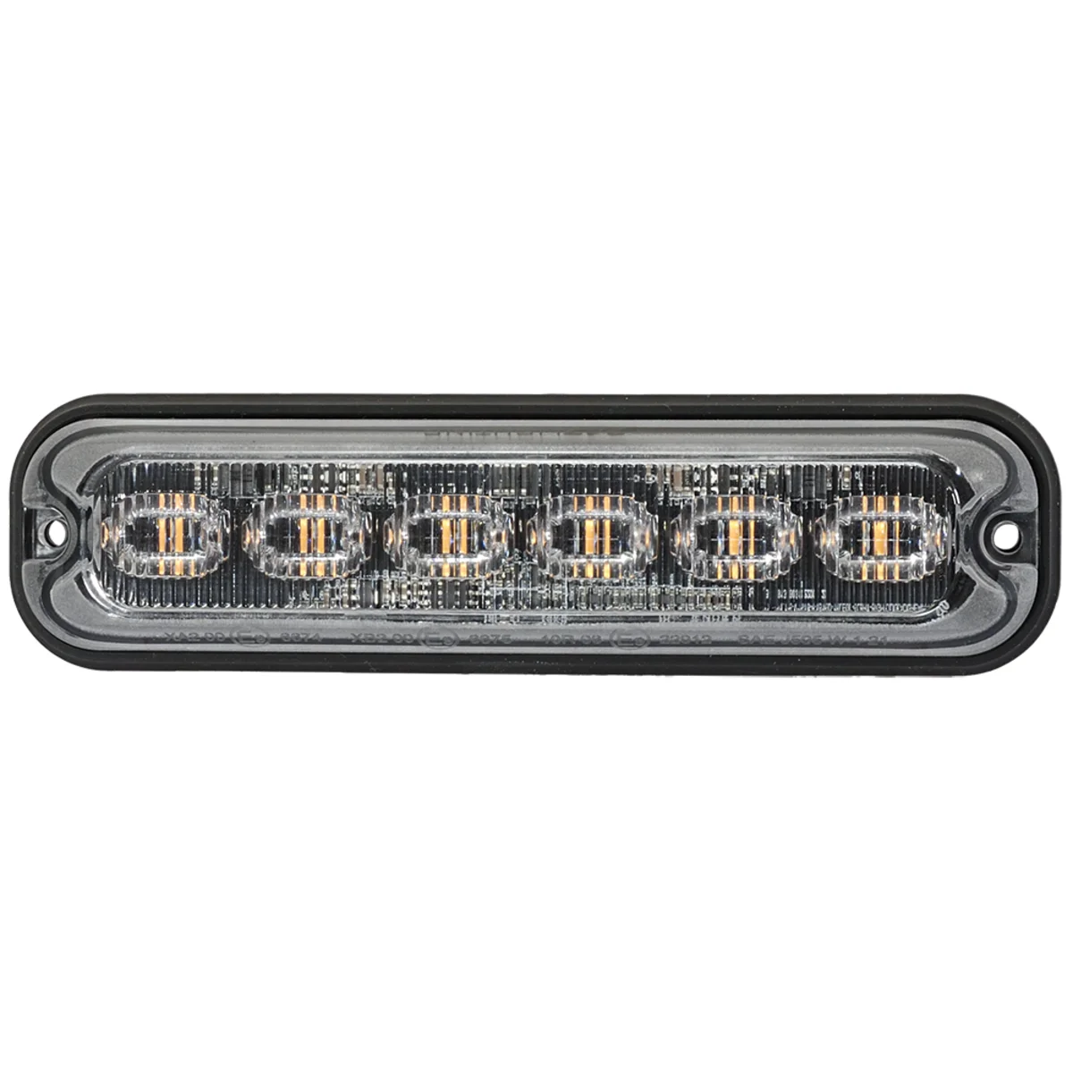 Sidomarkering Blixt LED Orange 12V/24V 24W, Slim type, ECE R10/65, 19mönster L130m x H30mm x B11mm. Hållavstånd 122mm. 24W (6 x 4W), 6 LEDs/ Amber, Rated IP69K, Nominal Current @ 12V: 1.2A, Nominal Current @ 24V: 0.6V, 19 Flash Patterns, PC Lens (Clear)/ Aluminium Base Surface / Screw Mount, 200mm Cable 122mm Bolt Distance (3.5mm), ECE Approved Reg 10 / Reg 65 (Class 2), Operating Temp.: -45°C to +60°C
